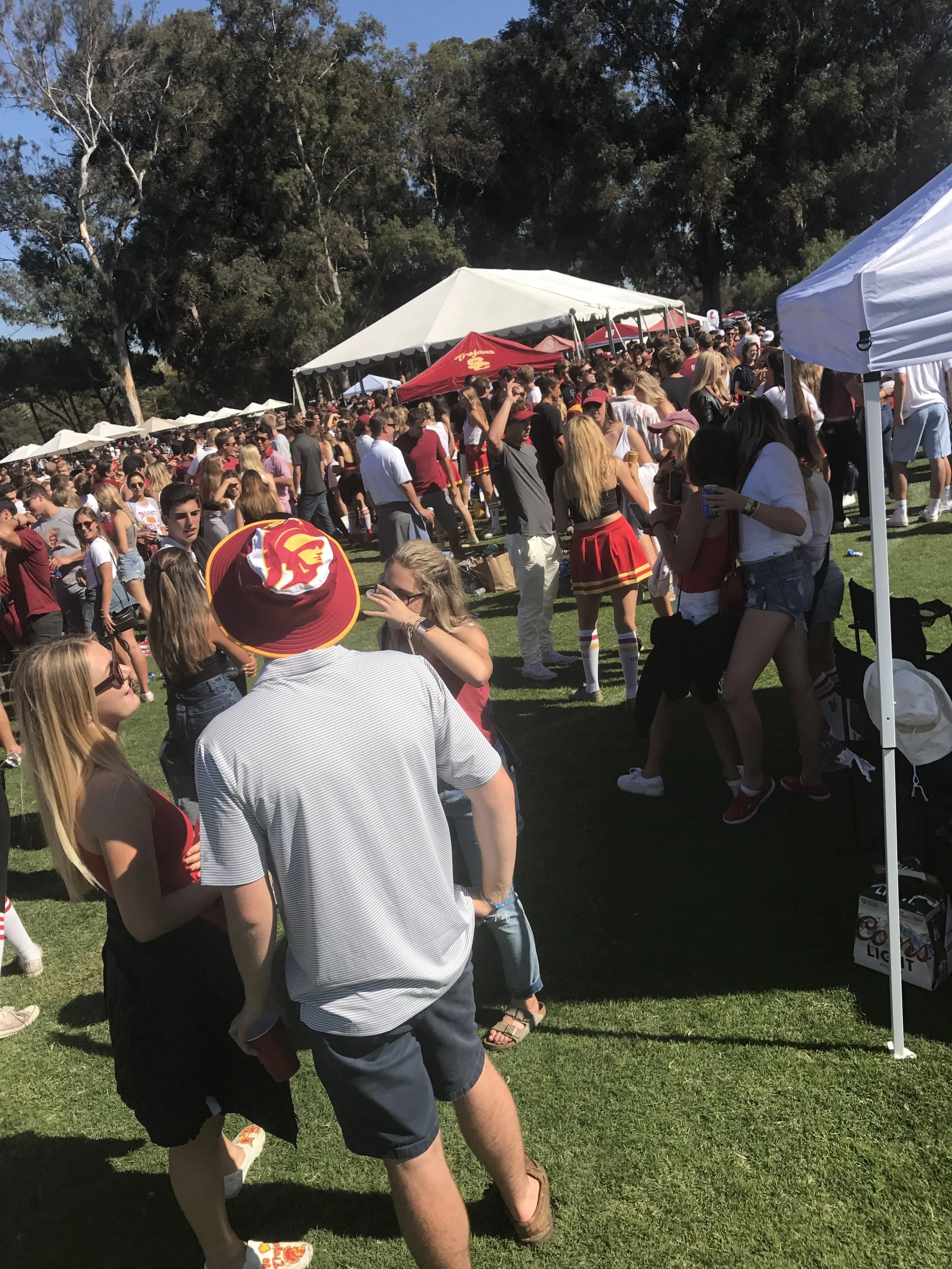 We work our way from the Walk to the area where we are told students and recent alumni often tailgate outside Gate 13, which on this day appears to be flooded with quite the presence of USC undergrads commingling with the Cardinal kids, sharing swigs of Fireball and planting the seeds for the ideas that will be Silicon Valley's next great start-up.